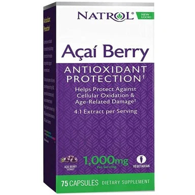 Acai Berry на Натрол съдържа екстракт с висока биоконцентрация, извлечен от "супер-плода" Акай (Acai berry), притежаващ важни хранителни свойства и оказващ благоприятен ефект върху човешкото здраве. Акайбери е тъмнолилав плод на диво растение, което вирее в тропическите гори на Бразилия. Приемът на Акай успешно подпомага борбата с наднорменото тегло, сърдечно-съдовите заболявания, диабета, психичното здраве и потентността. Капацитетът на абсорбиране на свободните радикали (двойно по-висок от този на боровинките) превръща плода в най-добрият избор за поддържане на добро здраве и тонус. Плодовете на Акай се подлагат на внимателна екстракция с вода (без намесата на никакви химически разтворители), което е гаранция за запазването на богатия набор от активни съставки, както и съхраняване на тяхната ефективност. Дозата за еднократен дневен прием съдържа екстракт от плода на Акай в съотношение 4:1. Акай Бери съдейства за неутрализиране на свободните радикали, поддържа нормалните нива на тонус и енергичност и е произведен с естествени и безвредни методи без използване на химически разтворители. Acai Berry 1000 mg се предлага под формата на капсули, които са със специфичен вкус и аромат, като характерността им се дължи на съдържащият се в тях екстракт от Акай с високо ниво на качество и ефикасност. Отпечатаната на опаковката емблема Rain Forest Safe обозначава, че суровината, използвана за производството на продукта, е с изцяло натурален произход. Предлага се в опаковка от 60 капсули.