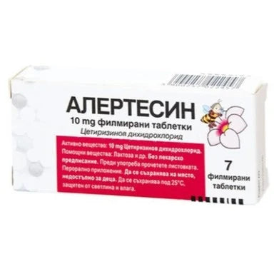 Алертесин е противоалергично лекарство, съдържащо цетиризин, което се използва при възрастни и деца на и над 6 годишна възраст. То облекчава симптомите при сезонен и целогодишен алергичен ринит (напр. запушен нос, обилна водниста секреция от носа, сърбеж в носа, често кихане, зачервяване, сълзене и сърбеж в очите). Препоръчва се и за облекчаване на симптомите при хронична идиопатична уртикария (продължителна, упорита, с интензивен сърбеж по кожата копривна треска). Предлага се в опаковка от 7 таблетки.