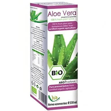 Био сокът на Абофарма от Алое Вера е естествен антибиотик и натурален източник на енергия. Той е мощен антиоксидант, а при редовен прием забавя процесите на стареене в организма и предпазва клетките от агресивното действие на свободните радикали. Сокът влияе благоприятно върху бактериалната чревна флора и намалява риска от образуване на атеросклеротични плаки. Добит от листата на Алое Вера със съдържание на около 160 известни съставки, които са благоприятни за организма. Те спомагат за намаляване нивото на холестерола, за предпазване на тялото от стрес, за предпазване от камъни в бъбреците, за предотвратяване на високото кръвно налягане и рака на дебелото черво. Алоето благоприятства храносмилателния тракт, помага при запек и стабилизира кръвната захар, което го прави подходящо и за диабетици. Притежава тонизиращо и имуностимулиращо въздействие. Предлага се в опаковка от 330 мл.