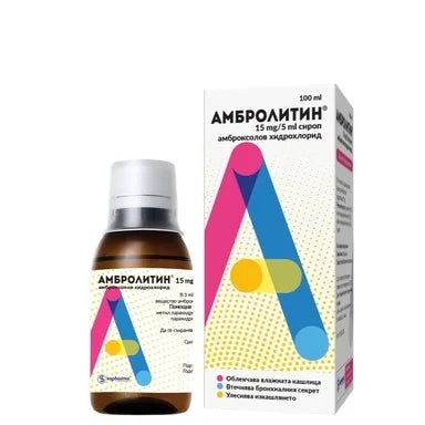 Ambrolytin сироп на Софарма е продукт, който облекчава влажната кашлица. Той е муколитик, подходящ за употреба при остри и хронични заболявания на горните и долни дихателни пътища, съпроводени със засилена вискозна секреция и нарушен мукусен транспорт. Сиропът облекчава влажната кашлица, втечнява бронхиалния секрет и улеснява откашлянето. Амбролитин е лекарствено средство без лекарско предписание, предназначено за възрастни и деца над 2 години. Без захар, без оцветители. С приятен вкус на малина. Предлага се в опаковка от 100 мл.