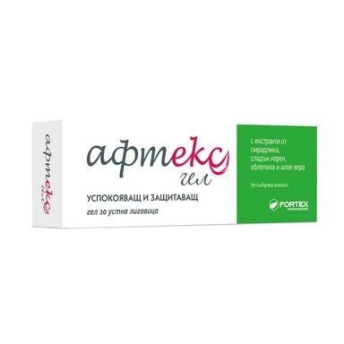 Aftex на Фортекс е гел на растителна основа за третиране на афти, който подпомага възстановителните процеси при инфекции, възпаления или язви в устната кухина. Успокоява, заздравява и защитава възникнали наранявания, образува защитен филм върху самата раничка и се бори с патогенните микроорганизми. Комбинацията от смрадлика, сладък корен, ракитник, алое вера и хиалуронова киселина притежава силно изразен лечебен, заздравяващ и успокояващ ефект върху нарушената цялост на лигавицата. . Продуктът е подходящ при профилактика и при появата на афти, малки лезии, язви в устната кухина, наранявания от брекети, зъбни протези и други. Предлага се в опаковка от 20 мл.