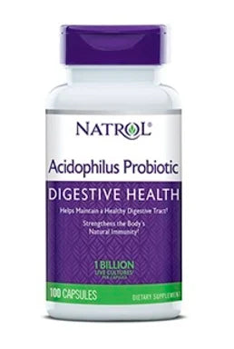 Acidophilus Probiotic с 3 билиона живи култури от Натрол допринася за подобряване на храносмилателните процеси, тонуса и защитните функции на организма. Пробиотичното му действие позволява достигането на достатъчно голямо количество живи бактерии в дебелото черво, където е необходимо да се заселят и размножат. Ацидофилус Пробиотик има свойството ефективно да понижава нивата на "лошия холестерол", както и да възпрепятства чревни, пикочно-полови и други инфекции. Благодарение на силния пробиотичен комплекс, са подобрени всички физиологични процеси в храносмилателната система, имунната система е стимулирана, а обмяната на веществата е правилно регулирана. Организмът е цялостно тонизиран, възстановен и укрепен. С противоалергичен ефект, а свежестта и действието му се запазват за най-дълго, когато след отваряне се съхранява в хладилник.