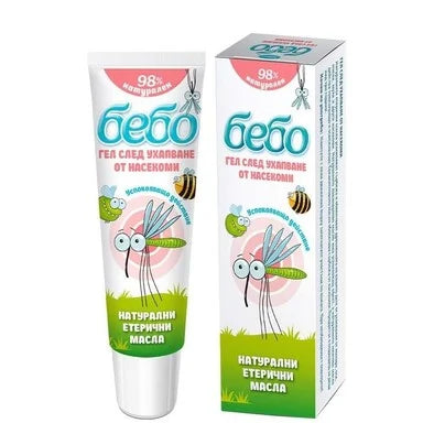 Гелът след ухапване от насекоми Bebo облекчава сърбежа и дразненията, предизвикани от ухапвания от комари, оси, пчели, мухи и други насекоми. Натуралното лавандулово масло има успокояващ ефект, а натуралното ментово масло действа тонизиращо и освежаващо. Евкалиптовото масло облекчава сърбежа от насекоми. Продуктът е подходящ за деца над 3 години. Предлага се в опаковка от 20 мл.