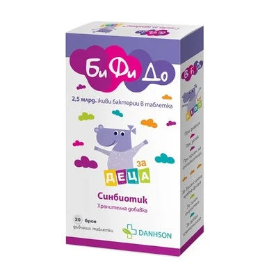 Bifido Kids на Дансон е синбиотик за деца, който комбинира пробиотици (Lactobacillus acidophilus и Bifidobacterium longum) и пребиотик (Inulin). Пробиотиците подпомагат по естествен начин храносмилането, стомашно-чревната флора и имунната система. Пребиотикът засилва действието на пробиотиците. Пребиотиците осигуряват среда с подходящо pH и хранителни вещества, благоприятна за по-доброто развитие на пробиотичните бактерии. Предлага се в опаковка от 20 дъвчащи таблетки.