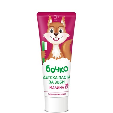 Пастата за зъби Бочко предлага формула, която се грижи за ежедневната хигиена на детските зъби и венци. Тя заздравява зъбния емайл и повишава реминерализацията на зъбите с добавения калций. Предотвратява развитието на кариес и се грижи за здравето на венците посредством включения флуор. Свежият вкус и аромат помагат за приучаване към редовна устна хигиена. Съдържа натриев флуорид (Sodium Fluoride ) - 500 ppm. Предлага се в опаковка от 75 мл.