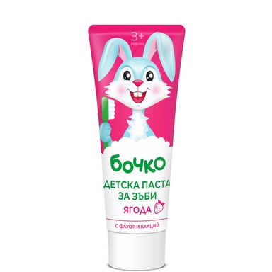 Детската паста за зъби Bochko е създадена със достатъчно количество флуор и калций. Тя се грижи за здравите зъбки и красивата усмивка. Формулата й заздравява зъбния емайл и повишава реминерализацията на зъбите с добавения калций. Пастата предотвратява развитието на кариес. Предлага се в опаковка от 75 мл.