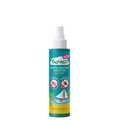 Мулти Протект актив е лосион на Бочко, който предпазва от кърлежи и комари до 8 часа. Спреят осигурява активна защита срещу кърлежи и три от най-разпространените видове комари: тропически, тигрови и обикновени. Формулата му е без добавен аромат и е толерантна към кожата. Подходящ е за цялото семейство и за деца над 2 години. Предлага се в опаковка от 120 мл.