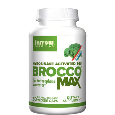 BroccoMax от Джароу е екстракт от семена на броколи и се произвежда по патентован процес, като запазва мирозиназата, ензима в броколите, който метаболизира SGS (сулфорафан глюкозинолат, известен още като глюкорафанин) в тънките черва в сулфорафан. Сулфорафанът подкрепя репликация на клетките и здравето на черния дроб. Поддържа кръвното налягане и сърдечно-съдовото система, активен е в областта на стомашното здраве, включително в подкрепата на здравословни нива на стомашна киселина. Насърчава нормалните здравословни възпалителни реакции, включително потискането на СОХ-2, активирането на антиоксидантни ензими и модулиране на продукцията на цитокини. Всяка капсула е с удължено освобождаване. Не съдържа пшеница, глутен, соя, млечни продукти, яйца, риба и ядки. Предлага се в опаковка от 60 капсули.