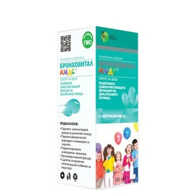 Bronhovital Kids на марката Mirta Medicus подпомага самоочистващата функция на дихателните пътища и физиологичното разреждане и елиминиране на секретите. Той хармонизира имунните функции и съдейства за нормалното клетъчно дишане и обмяната на веществата. Сироп против кашлица съдържа комплекс от меко действащи билки (мащерка, живовляк, великденче, коприва, червен лук, очиболец, кръвен здравец, черен бъз и други), които омекотяват дразненето в гърлото, трахеята и бронхите. Добавените в състава аминокиселини (лизин, аргинин), минерали (калций, магнезий, цинк, селен) и витамини (А,С,В6) допринасят за укрепването на детския имунитет. Сиропът е с натурален вкус, без аромати, без оцветители. Предлага се в опаковка от 100 мл.