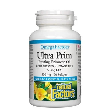 Ultra Prim на Натурал Факторс представлява студено пресовано масло от вечерна иглика, което има много добро въздействие върху здравето. То е особено полезно за правилния синтез на хормоните, за сърдечната функция, за костите, за поддържане на кожата и косата и др. Намалява болката, свързана с ПМС, и облекчава сухата, раздразнена кожа. Може да се използва и като противовъзпалително средство в лечението на различни автоимунни заболявания. Вечерната иглика на Натурал Факторс е с високо съдържание на есенциални мастни киселини, които осигуряват градивните елементи за клетъчните мембрани, синтеза на хормони и хормоноподобните вещества. Есенциалните мастни киселини не се синтезират от тялото и трябва да се набавят чрез храната и/или хранителни добавки. В тях влизат и омега-3 и омега-6 мастни киселини, които играят решаваща роля за мозъчната функция, нормалния растеж и развитие. Тези полезни мазнини насърчават усещането за ситост, подпомагат действието на витамините А, Д, Е и К, насърчават превръщането на каротина във витамин А, за оптималната абсорбция на минералите и т.н. Омега-6 мастни киселини, открити в маслото от вечерна иглика, са необходими за синтеза на простагландин Е. Простагландините са хормоноподобни вещества, отговорни за правилната хормонална продукция, здравето на клетките и др. Недостигът на простагландини води до повишено образуване на кръвни съсиреци, възпаление, високо кръвно налягане, стерилитет, клетъчна пролиферация, рак и наддаване на тегло. Много изследвания показват, че маслото от вечерна иглика създава здравословна среда за зачеване, особено при Синдром на поликистозните яйчници (СПЯ). То насърчава производството на цервикална секрет, който е важен фактор за настъпването на бременност. Не съдържа: изкуствени оцветители, аромати, консерванти, подсладители, млечни продукти, нишесте, пшеница, скорбяла, захар, яйца, царевица, черупчести, ядки или ГМО. Студено пресовано. Не съдържа Хексан. Предлага се в опаковка от 90 меки капсули.