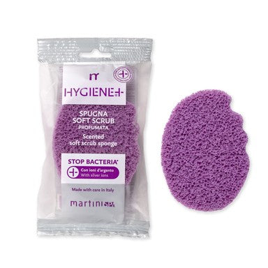 Антибактериална гъба, която е приятно ароматизирана и притежава ексфолиращи микрогранули, които премахват замърсяванията и правят кожата кадифено мека. Чрез Xpand технология са добавени сребърни йони, които предотвратяват развитието на бактерии и неприятен аромат в гъбата. Дерматологично тествана. Да се изплаква преди и след всяка употреба. В лилав цвят.