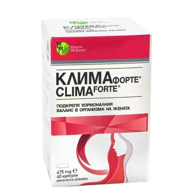 Clima Forte от Mirta Medicus е продукт, предназначен за да подкрепя хормоналния баланс в организма на жената в периода на климакс и менопауза. Допринася за нормалния функционални състояния на нервната и сърдечно-съдовата система. Способства за поддържане на костната плътност, доброто състояние на кожата и психоемоционалната хармония. Предлага се в опаковка от 40 капсули.