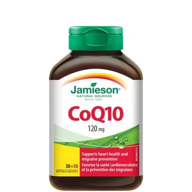 CoQ10 на канадската марка Джймисън, съдържа 120 мг Коензим Q10 във всяка капсула, създадена по технология, която не позволява разпадане на хранителните съставки. Само 1 капсула на ден е достатъчна за нуждите на организма. Спомага за намаляване увреждането от свободни радикали, защитава клетките от преждевременно стареене и укрепва сърдечно-съдовата дейност и подпомага производството на енергия. Способства за поддържане на здравословни нива на CoQ10 при пациенти, подложени на лечение със статини. Системата меки капсули на Jamieson гарантира, че няма вероятност от намаляване на ефективността или нивата на хранителни вещества на CoQ10 при топлинни и други процеси на производството. Предлага се в опаковка от 60 капсули.