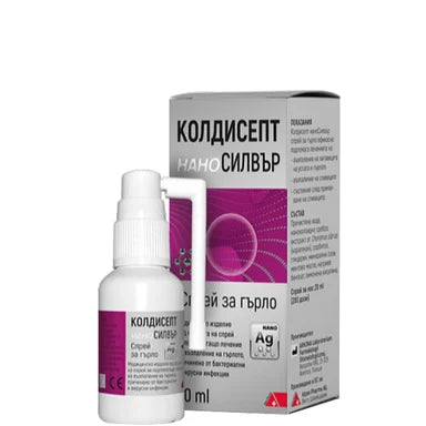 Coldisept Nano Silver е медицинско изделие под формата на спрей за гърло, който притежава тройно действие - лекува, възстановява и предпазва. Ефективно лекува гърлото, благодарение на антибактериалните и антивирусни свойства. Ефектът му се фокусира директно върху инфекциозните причинители, като облекчава болката и възстановява лигавицата. Формулата му комбинира колоидни молекули нано сребро, към които са добавени ментово масло, екстракт от Ирландски мъх и микс от минерални соли. Може да се прилага за лечение и профилкатично, срещу хронични заболявания, възпаление на лигавиците на устата и гърлото, причинено от вирусни или бактериални инфекции, възпаление на тонзилите, след отстраняване на сливици. Продуктът е подходящ за хора с възпалено гърло, дрезгав глас, суха кашлица при настинка, превантивно срещу вируси и бактерии през студения сезон. Предлага се в опаковка от 20 мл.