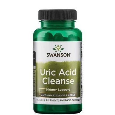 Uric Acid Cleanse на Суонсън е синергична комбинация от 7 билки, която спомага за изхвърляне на излишното количество пикочна киселина от организма. Пикочната киселина е страничен продукт от пуриновия метаболизъм и се елиминира чрез бъбреците и черния дроб, тъй като те са органите, които основно филтрират и прочистват кръвта. В някои случаи, поддържането на здравословните нива на пикочната киселина е затруднено, което е свързано с генетично предразположение, начина на живот, спазването на диета с високо съдържание на протеини и др. Продуктът поддържа нормалната функция на черния дроб и бъбреците и подпомага естествения процес на елиминиране на пикочната киселина и поддържането ѝ в нормални нива. Предлага се в опаковка от 60 капсули.