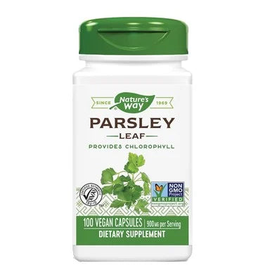 Parsley Leaf е продукт на Нейчърс Уей с антиоксидантни свойства, който противодейства на свободните радикали. Билката подпомага извеждането на излишните течности  от организма, стимулирайки бъбречната функция. Ефектите, които оказва на сърдечно-съдовата система, я превръщат в тоник за сърцето. Благодарение на своите противовъзпалителни свойства, успокоява болката в ставите. Магданозът е богат също на калций, калий, желязо, магнезий, манган за поддържане на електролитния баланс. Съдържанието на хлорофил го прави естествено и натурално средство за освежаване на дъха. Подпомага имунната система и допринася за неутрализиране на оксидативния стрес и канцерогенните вещества. Намалява подуването и има диуретично действие. Оказва благоприятен ефект при възпаление на бъбреците и пикочния мехур, камъни в бъбреците и задържане на урината. Предлага се в опаковка от 100 капсули.