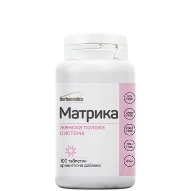 Matrika е натурален продукт на Хербамедика, съдържащ комплекс от билки подпомагащи всички функции на женската полова система. Матрика регулира менструалният цикъл, укрепва кръвоносната мрежа в гениталии, лекува кистозни изменния на яйчниците и миоматозна матка. - възпаления, хормонални нарушения, кистозни яйчници, миома. Предлага се в опаковка от 100 таблетки.
