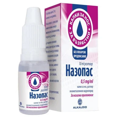 Nazopass са капки за нос, предназначени за деца над 6 години, юноши и възрастни. Съдържат активно вещество оксиметазолин хидрохлорид, който спомага за намаляване отока на лигавицата. Облекчава състояния, свързани със запушване на носа, като: ринит, алергичен ринит, синузит, възпаление от различни видове дразнители. Ако в рамките на 5 до 7 дни няма подобрение, трябва да се потърси лекарска помощ. Предлага се в опаковка от 10 мл.
