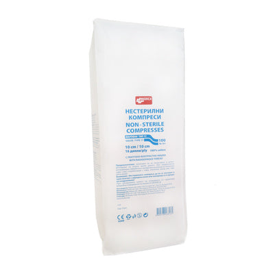 Нестерилни марлени компреси 10см/10см х16 дипли х100 Medica
