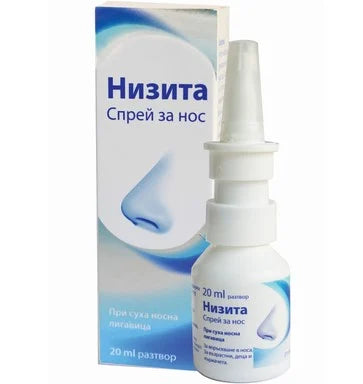 Nizita спрей се прилага за подпомагане лечението в случаи на запушен нос, за омекотяване на крусти, за почистване и овлажняване на носната лигавица /при сух въздух/. Спреят за нос Низита е без съдържание на консерванти и е подходящ както за възрастни, така и за деца и кърмачета. Низита спрей използва лечебната сила на натриевия хлорид /готварска сол/. При запушен нос поддържа лигавицата на носа влажна и подпомага неговото бързо отпушване. При суха и покрита с крусти носна лигавица Низита я овлажнява и води до бързото й възстановяване. При малки деца и кърмачета, които не могат самостоятелно да издухат носа си, Низита може да допринесе за почистването на ноздрите и запазването на естествената защитна функция на носната лигавица. Предлага се в опаковка от 20 мл.