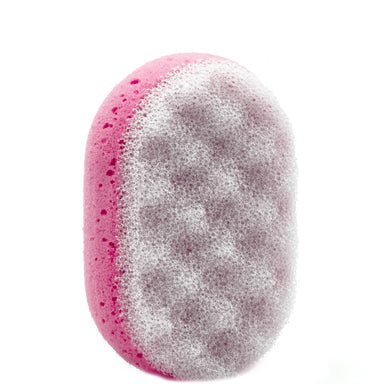 Овалната гъба за баня е подходяща за поддържане на ежедневната хигиена. Има гладка страна за релаксиращ масаж и релефна страна за по-енергизиращ. Премахва замърсяванията и е произведена с възобновяема енергия. Не съдържа латекс. Дерматологично тестван продукт, без тестове върху животни. В розов цвят. Предлага се в опаковка от един брой.