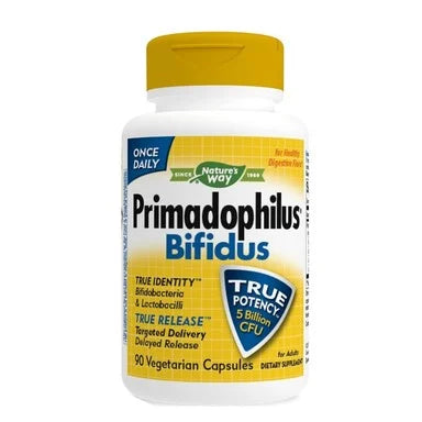 Primadophilus Bifidus на Нейчърс Уей съдържа 5 милиарда активни пробиотици, представени от 4 щама бифидобактерии и лактобацили – Bifidobacterium breve, Bifidobacterium longum, Lactobacillus rhamnosus и Lactobacillus acidophilus, благоприятстващи чревната микрофлора и дебелото черво. Той спомага за възстановяването на нормалната чревна микрофлора и качественото усвояване на хранителните вещества. Предотвратява развитието на болестотворни бактерии и намалява подуването на корема и образуването на газове. Полезен е при прием на антибиотици и медикаменти, тъй като запазва нормалната среда на стомашно-чревния тракт. Продуктът повлиява положително имунната система. Подходящ е за прием от хора със синдром на раздразненото черво и улцерозен колит, както и за вегетарианци. Предлага се в опаковка от 90 капсули.