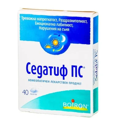 Хомеопатичният лекарствен продукт Sedatif PS на Боарон се използва традиционно за лечение на нервни състояния и емоционален дисбаланс. Подходящ при състояния на тревожна напрегнатост, емоционална лабилност, раздразнителност, нарушения на съня, свързани с тези състояния, при лица, подложени на стрес, неспокойни деца и възрастни хора. Не предизвиква привикване. Предлага се в опаковка от 40 таблетки.
