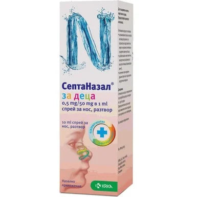 Septanazal е спрей за нос, който е изцяло предназначен за деца. Съдържа ксилометазолин и декспантенол. Ксилометазолинът свива кръвоносните съдове в лигавицата на носа и намалява отока и отделянето на секрети. Така облекчава чувството на запушен нос. Декспантенолът има способност да възстанови наранената носна лигавица като по този начин я предпазва от увреждания. Намалява отока на носната лигавица при възпаление на лигавицата на носа (ринит) и за подпомагане зарастването на лезии по назалната лигавица и съседните кожни участъци. Септаназал облекчава симптомите на неалергично възпаление на носната лигавица (вазомоторен ринит) и лекува нарушеното дишане през носа след назална хирургична операция. Това лекарство е предназначено за употреба при деца на възраст от 2 до 6 години. Предлага се в опаковка от 10 мл.