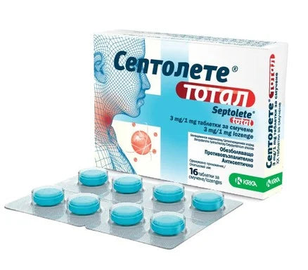 Septolete Total са таблетки за смучене с противовъзпалително, обезболяващо и антисептично действие, които се използват за лечение при дразнене в гърлото, устата и венците, при гингивит, фарингит и ларингит. Септолете тотал дезинфекцира устата и гърлото и намалява признаците на възпаление като болка, зачервяване, оток, парене и увредена функция. Предлага се в опаковка от 16 пастили.