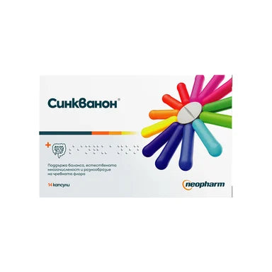 Sinquanon от Неофарм е комбинация от 14 пробиотични щама от 4 различни пробиотични рода - лактобацили, бифидобактерии, сахатомици и спорообразуващи бацили. Те допринасят за възстановяване и поддържане на нормална чревна микрофлора по време и след антибиотичен прием. Увеличава популацията на полезните бактерии в червата, благодарение на 50 млрд. живи бактерии в ч капсула. Щамовете в Синкванон са подбрани с повишена естествена устойчивост срещу най-често използваните антибиотици. Капсулата Синкванон е стомашно-устойчива, което означава, че преминава през киселата среда на стомаха и се разтваря в тънките черва. По този начин пробиотичните бактерии достигат до червата живи, където оказват своите ползотворни ефекти. Предлага се в опаковка от 14 капсули.