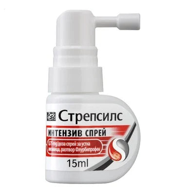 Спреят Strepsils Intensive на британския производител Reckitt Benckiser Healthcare, е лекарствен продукт без лекарско предписание, който е предназначен за облекчаване на болки и дразнене в гърлото. Спреят има успокояващ ефект при отоци в лигавицата на дихателните пътища и при затруднено преглъщане. Той съдържа активното вещество флурбипрофен (нестероидно противовъзпалително средство), което спомага за ефективно потискане на усещането за болка, за успокоение на възпалението, за понижаване на високата температура и за намаляване на отоците. Продуктът е аналгетик, има противовъзпалително свойство като спомага за облекчаване на възпаленото гърло за 5 минути и действа до 6 часа. Стрепсилс Интензив Спрей има приятен черешово-ментов вкус и е подходящ само за възрастни и юноши над 18 годишна възраст. Предлага се в опаковка от 15 мл.