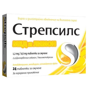 Strepsils на Рекит Бенкисер Хелткеър е лекарствен продукт, който принадлежи към групата на антисептиците и се използва за лечение и облекчаване на симптомите при инфекциозно-възпалителни заболявания на устната кухина (стоматити, ларингити, фарингити). Притежава антибактериални, противогъбични и антивирусни свойства. Предлага се в опаковка от 24 таблетки.