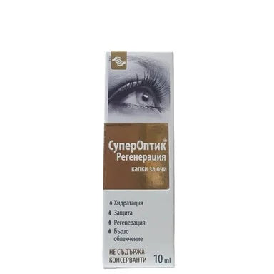 SuperOptic Regeneration са капки за очи с хидратиращ, успокояващ и защитен ефект, улесняващи регенерацията на очната повърхност. Повлияват симптоми в случай на лек до умерен синдром на сухото око и/или дразнене на очната повърхност. Действието им стабилизира слъзния филм, овлажнява окото и възстановява повърхността му при механично дразнене (напр. парене, сърбеж, сълзене) поради външни фактори, като вятър, слънце, хлорирана вода, фармакотерапия; вследствие носене на контактни лещи, диагностични или хирургични интервенции на окото; при уморени очи, причинени от продължителна работа на компютър. Супер Оптик имат двоен ефект: те съдържат натриев хиалуронат, който хидратира и стабилизира слъзния филм, и декспантенол, който успокоява, защитава и подпомага регенерирането на очната повърхност. Облекчаването на симптомите на синдром на сухото око може да предотврати усложнения. Предлагат се в опаковка от 10 мл.