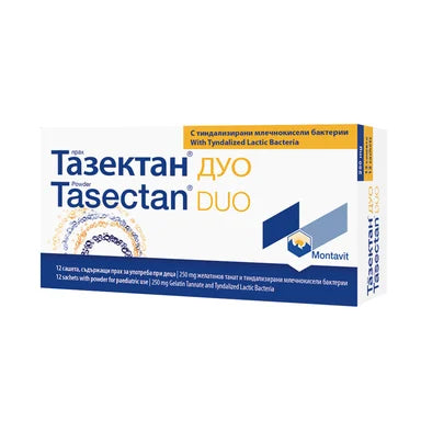 Tasectan Duo на Монтавит е предназначен е за профилактика и лечение на стомашно-чревни нарушения, като диария и други свързани с нея симптоми, подуване и болки в корема, в резултат от инфекциозен гастроентерит, антибиотични лечения и химиотерапия. Използва се за възстановяване на физиологичната функция на чревната стена, както и за предотвратяване и облекчаване на дисбактериоза от различен вид и произход. Помага за възстановяване на оптималното състояние на червата, стимулира растежа на ендогенната чревна флора и по този начин допринася за подобряване на естествената защита на организма. Проявява своя ефект в рамките на първите 12 часа. Предлага се в опаковка от 12 сашета.