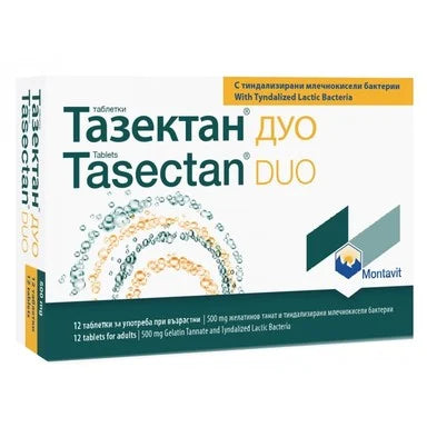 Tasectan на Монтавит е предназначен за профилактика и лечение на стомашно-чревни нарушения, като диария и други свързани с нея симптоми, подуване и болки в корема, в резултат от инфекциозен гастроентерит, антибиотични лечения и химиотерапия. Помага за възстановяване на оптималното състояние на червата, стимулира растежа на ендогенната чревна флора и по този начин допринася за подобряване на естествената защита на организма. Използва се за възстановяване на физиологичната функция на чревната стена, както и за предотвратяване и облекчаване на дисбактериоза от различен вид и произход. Проявява своя ефект в рамките на първите 12 часа. Предлага се в опаковка от 12 таблетки.
