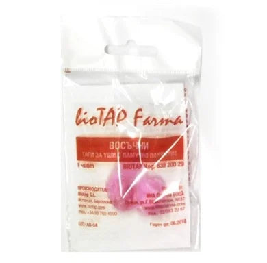 Восъчните тапи за уши с памучно покритие представляват защитни тапи за уши на марката Биотап, изработени от восък и памучно покритие, които се моделират лесно и позволяват приспособяване към ухото. Служат за защита срещу вода, въздух и шум и се използват и при спане, учене, пътуване и т.н. Данни за намаляване на шума: H=24dB (високо), M=17dB (средно), L=15dB (ниско), SNR=20dB (съотношение сигнал спрямо звук).