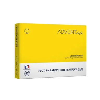 Allergy Check e тест за алергии в домашни условия от Адвент лайф. Алергичната реакция представлява отговор на имунната система, породен от свръхчувствителност към различни, безвредни за организма вещества, което предизвиква определени симптоми. Имунните клетки неправилно ги идентифицират като заплаха. В отговор на тази „атака“ имунната система синтезира антитела от имуноглобулинов клас Е, което води до алергична реакция на тялото. Предлага се в опаковка от 1 брой.