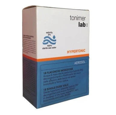 Стерилен хипертоничен разтвор от морска вода, под формата на моно дози за еднократна употреба, подходящ за почистване и овлажняване на носната кухина. Може да се употребява при инхалации или директно в носа. Природен продукт със слабо алкално РН, което позволява по-продължително приложение. Втечнява бронхиалния секрет и засилва естествената защита на лигавицата на носа. Подходящ за кърмачета, деца и възрастни. Tonimer е подходящ и в периода след медицински интервенции на носа, ушите и гърлото. Предлага се в опаковка от 18 ампули x3 мл всяка.