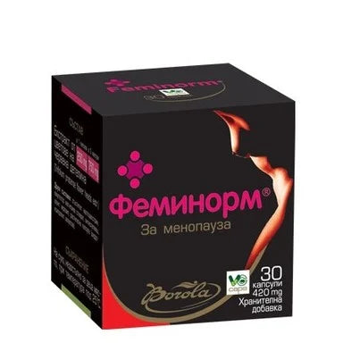 Feminorm на фармацевтичната компания Борола е с природен произход i се препоръчва при менопауза – за овладяване на леки менопаузални оплаквания; при предменструални невровегетативни и психически нарушения; при смущения в менструалния цикъл при млади момичета. Феминорм е подходящ и в периода на пременопауза. Той съдържа най-мощните фитоестрогени, структурно и функционално силно наподобяващи женските полови хормони. Те свързват селективно естрогенните рецептори и стимулират тяхната активност, но не потискат производството на собствени естрогени в организма. Това води до възстановяване на хормоналния баланс и нормализиране на менопаузалните нарушения. Феминорм възпрепятства остеопорозата, подобрява еластичността на кръвоносните съдове, понижава нивото на холестерола и предпазва от сърдечно-съдови усложнения. Природен продукт, естествена алтернатива на хормоно-заместителната терапия, за преодоляване на смущенията при менопауза. Предлага се в опаковка от 30 капсули.