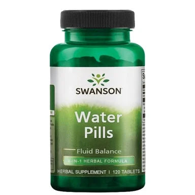 Water Pills e формула за обезводняване на Суонсън, която съчетава четири билки, действащи едновременно, за да подпомогнат поддържането на оптимално ниво на водата в организма. Балансирайки течностите, продуктът премахва неприятното подуване и спомага за регулирането на телесното тегло. В състава са включени бучу лист  (Agathosma spp.), листа от магданоз (Petroselinum crispum), листа от мечо грозде  (Arctostaphylos uva-ursi) и листа от хвойна (Juniperus squamata). Растението бучу е ефективно при възпалителни заболявания на пикочната система и при камъни в бъбреците. Листата от бучу са богати на масло, което стимулира отделянето на течности от организма. Листата от мечо грозде и магданозът се използват срещу инфекции на пикочните пътища, тъй като действат антибактериално. Хвойната благоприятства здравето на уринарния тракт и бъбреците. Продуктът действа срещу отоците, подуването и задържането на излишна вода в организма, има положителен ефект върху здравето на сърцето, спомага за поддържането на оптимално кръвно налягане и нормално телесно тегло. Предлага се в опаковка от 120 таблетки.