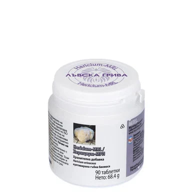 Hericium-MRL е невропротективен агент с естествени пребиотични свойства. Той се състои от ензими, които намаляват оксидативния стрес, подпомагайки развитието на здрав микробиом. Херициум-МРЛ има положително действие при леко когнитивно нарушение, тревожност, депресия, също така е използван като поддържаща терапия при хора с деменция, тремори, проблеми със съня, гастрит, язви. Hericium erinaceus стимулира синтеза на нервния растежен фактор (NGF), балансира чревния микробиом, намалява оксидативния стрес и растежа на вредните бактерии като H. pylori. Органично култивирана, Херициум–МРЛ подпомага имунитета, концентрацията, паметта и настроението. Благоприятно влияе на нервната, имунната и храносмилателната система. Hericium erinaceus е в основата на формулата на Mycology Research Laboratories (МРЛ) и съдържа 100% органично култивирани живи гъби, спорофори. Фирма МРЛ използва собствена технология за култивиране на гъби в Европа. Процесът осигурява еднородна биомаса в таблетки, всяка съдържаща 500 мг. Сертифицирано по ISO 22000-2018. Предлага се в опаковка от 90 таблетки.