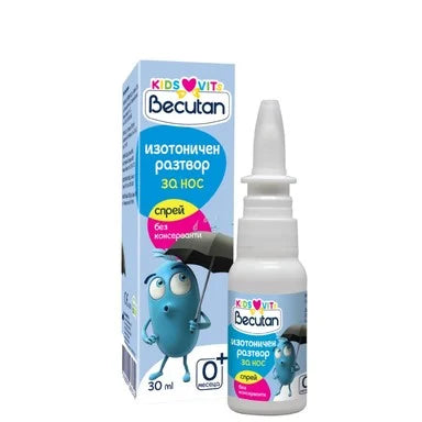 Becutan Kids Vits изотоничен разтвор, под формата на спрей с вода от залива Канкале в Бретан, подходящ за бебета и деца 0-6 години. С механично действие, което спомага за извличането и измиването на слуз и за хидратиране на носната кухина. Не съдържа консерванти. Предлага се в опаковка от 30 мл.