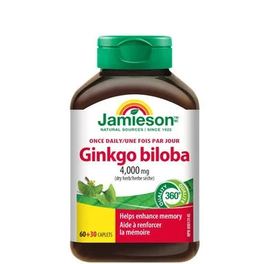 Гинко Билобата Jamieson, спомага за подобряване и улесняване притока на кръв и кислород в мозъка и крайниците. Приложим при хранителен режим с недостатъчен дневен прием на плодове и зеленчуци, той доставя биофлавоноидите, които са необходими за поддържане функцията на паметта, концентрацията и кръвообращението. С антиоксидантните си свойства, действа срещу свързаните със стареенето състояния като артрит и атеросклероза. Клинично изпитан, с японски произход, произведен от стандартизирани листа с една и съща степен на стареене, което гарантира 24% флавонгликозид. Не съдържа следи от тежки метали, ПХБ, диоксин, живак и олово. Без изкуствени оцветители, аромати и консерванти. Предлага се в опаковка от 90 таблетки.