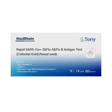 Комбинираният антигенен бърз тест за коронавирус COVID-19 и грип А+В (в назофарингеална проба) е бърз имунохроматографски метод за качествено определяне на антигени на вирусите на SARS-CoV-2, грип А и грип В в проби, взети с назофарингеален тампон, от лица със съмнение за SARS-CoV-2/грипна инфекция, в съчетание с клинична картина и резултати от други лабораторни изследвания. Обикновено антигенът се открива в проби от горните дихателни пътища по време на острата фаза на инфекцията. Положителните резултати показват наличието на вирусни антигени, но за определяне на фазата на инфекцията е необходима клинична корелация с анамнезата на пациента и друга диагностична информация. Положителните резултати не изключват бактериална инфекция или ко-инфекция с други вируси. Откритият агент може да не е категоричната причина за заболяването. Отрицателните резултати не изключват инфекцията със SARS-CoV-2/грип А+В и не трябва да се използват като самостоятелен довод за вземане на решения за терапия или по-нататъшни действия спрямо пациента. Предлага се в опаковка от 1 брой.