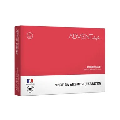 Дефицитът на желязо възниква, когато кръвта не съдържа достатъчно червени клетки и следователно ниски нива на хемоглобин, който е основен протеин, участващ в транспорта на кислород в цялото тяло. Важен компонент на хемоглобина е желязото. Ferri-Check на Адвент лайф е бърз имунодиагностичен тест за оценка на феритин (протеин, способен да съхранява желязо в клетките) от кръвна проба, извлечена след убождане на пръста. Предлага се в опаковка от 1 брой.