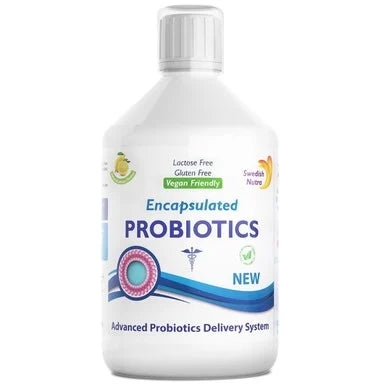 Микрокапсулираният пробиотик на Суидиш Нутра съдържа 10 милиарда CFU (полезни бактерии) на доза, които са предназначени да преминат през стомашните киселини в червата, за да достигнат до тънките черва. Обогатен с аминокиселината L-глутамин, която поддържа здравето на червата, и витамин С за имунната система. Комбинацията от четири щама - Bifidobacterium Lactis, Lactobacillus Acidophilius, Lactobacillus Plantarum и Lactobacterus Salivarius помага за здрава чревна флора. Не съдържа ГМО, глутен, соя, яйца, ядки, лактоза. 100% натурални цвят и вкус. Предлага се в опаковка от 500 мл.