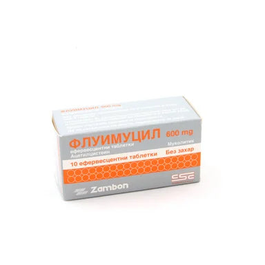 Флуимуцил 600 мг x10 ефервесцентни таблетки без захар