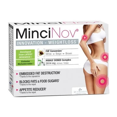 Mincinov на френската марка Троа шен е натурален продукт, който спомага за поддържане на нормалното телесно тегло. Той изгаря мазнините като преобразува белите мастни клетки в кафяви, блокира излишните захари и мазнини и редуцира апетита. Минсенов бързо и трайно намалява излишните килограми, без да предизвиква йо-йо ефект (връщане на изгубеното тегло). 15-дневен прием на продукта води до загуба на тегло благодарение на лимонена, съдържащ се в горчивия портокал, а L-карнитинът спомага за изгаряне на мазнините и производството на енергия от мускулите. Добавената Неопутниа е екстракт от опунция (Nopal) - вид кактус, наричан “бодлива круша”. Той абсорбира мазнини и захари, поддържа нормални нива на холестерол в организма и намалява рисковете от сърдечно-съдови заболявания. Включеният в състава капсаицин от чилито активира основния метаболизъм след ядене, увеличава усещането за ситост и намалява приема на храна. Предлага се в опаковка от 60 таблетки.
