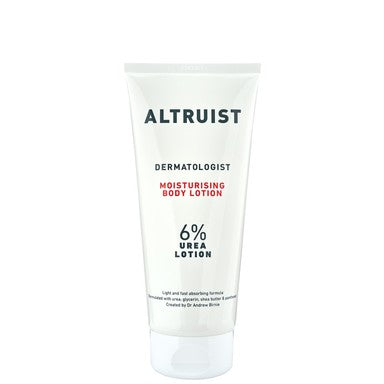 Дерматологичен овлажняващ лосион за тяло Алтруист. Съдържа 6% урея с лека и бързо абсорбираща се формула, глицерин, масло от карите и пантенол. Формула за възстановяване и облекчаване симптомите на сухата и сърбяща кожа. Предназначен за ежедневна употреба, като възвръща комфорта. Подходящ за всички типове кожа, включително чувствителната. Хипоалергенен и некомедогенен. Веган. Предлага се в опаковка от 200 мл.