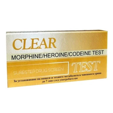 Опиат теста Клиър е предназначен да определи количеството на опиати и техните метаболити в спесимена на човешката урина. Той е е базиран върху ин витро теста. Опиати и техните метаболити могат да бъдат открити в урината (след прием на хероин, морфин, кодеин или маково семе). С теста се откриват опиати в концентрация над 300 ng/ml. Върху мембрана е фиксиран лиофилозиран коногат на частици колодиално злато с комбинация от поликлонални антитела за откриване на опиати или техните метаболити.